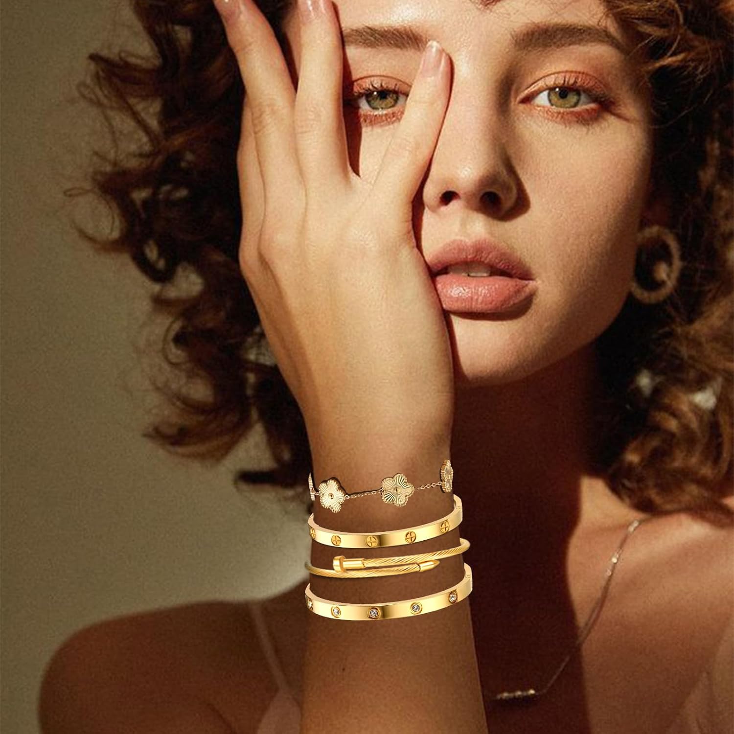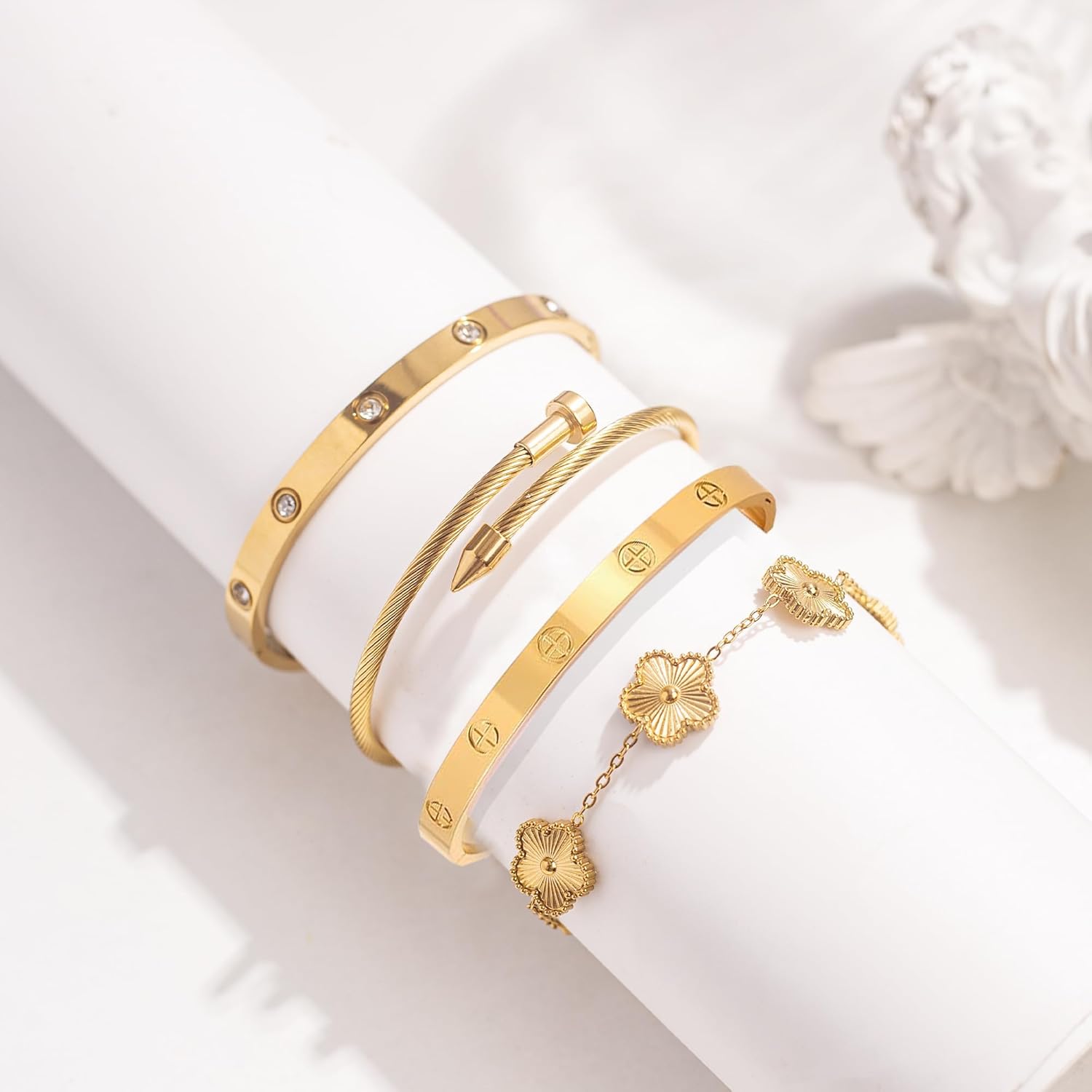 Gold Bracelets for Women-4Sets/3ets,18K Gold Plated Bracelet,Stainless Steel Bangle Bracelets Non Tarnish, Gold Bracelet Set Trendy Jewelry,Christmas Valentines Birthday Gifts for Girlfriend