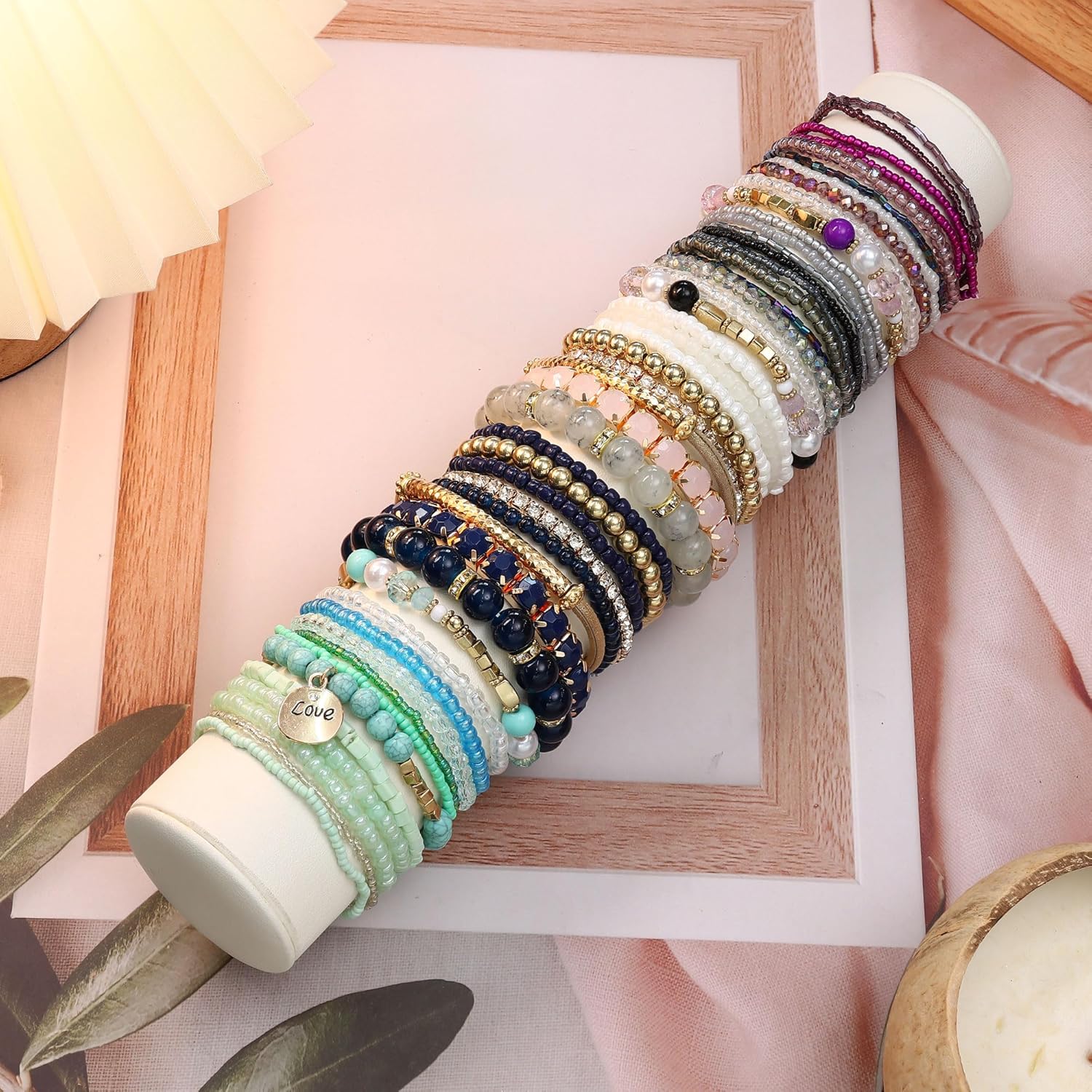 LOYALLOOK 6 Sets Bohemian Stackable Bead Bracelets for Women Stretch Bohemian Style Stretch Multilayered Boho Bracelet Set