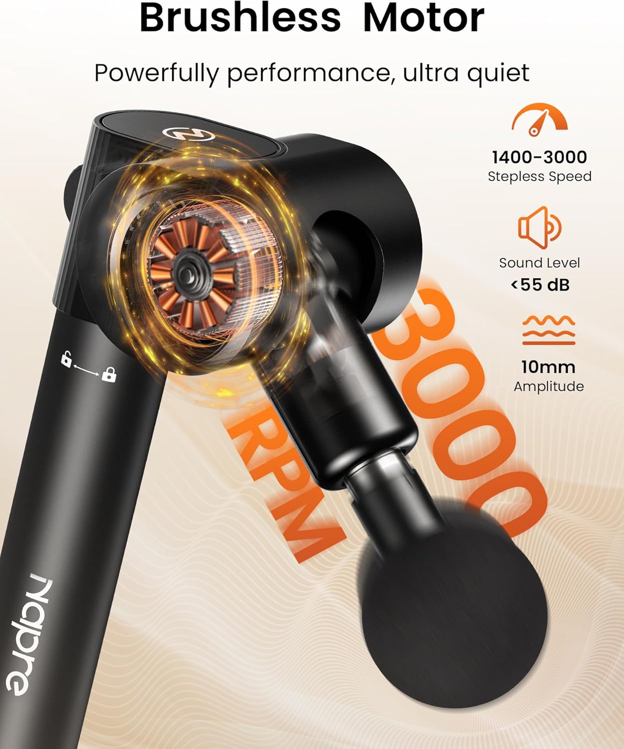 ✨Foldable & Multi-Angle Design: The NAPRE deep tissue massage gun combines a foldable, portable design with 5 adjustable angles, letting you precisely target muscles from neck to calves. Whether you’re an athlete, traveler, or simply in need of relief, this powerful massage gun delivers a personalized relaxation experience.