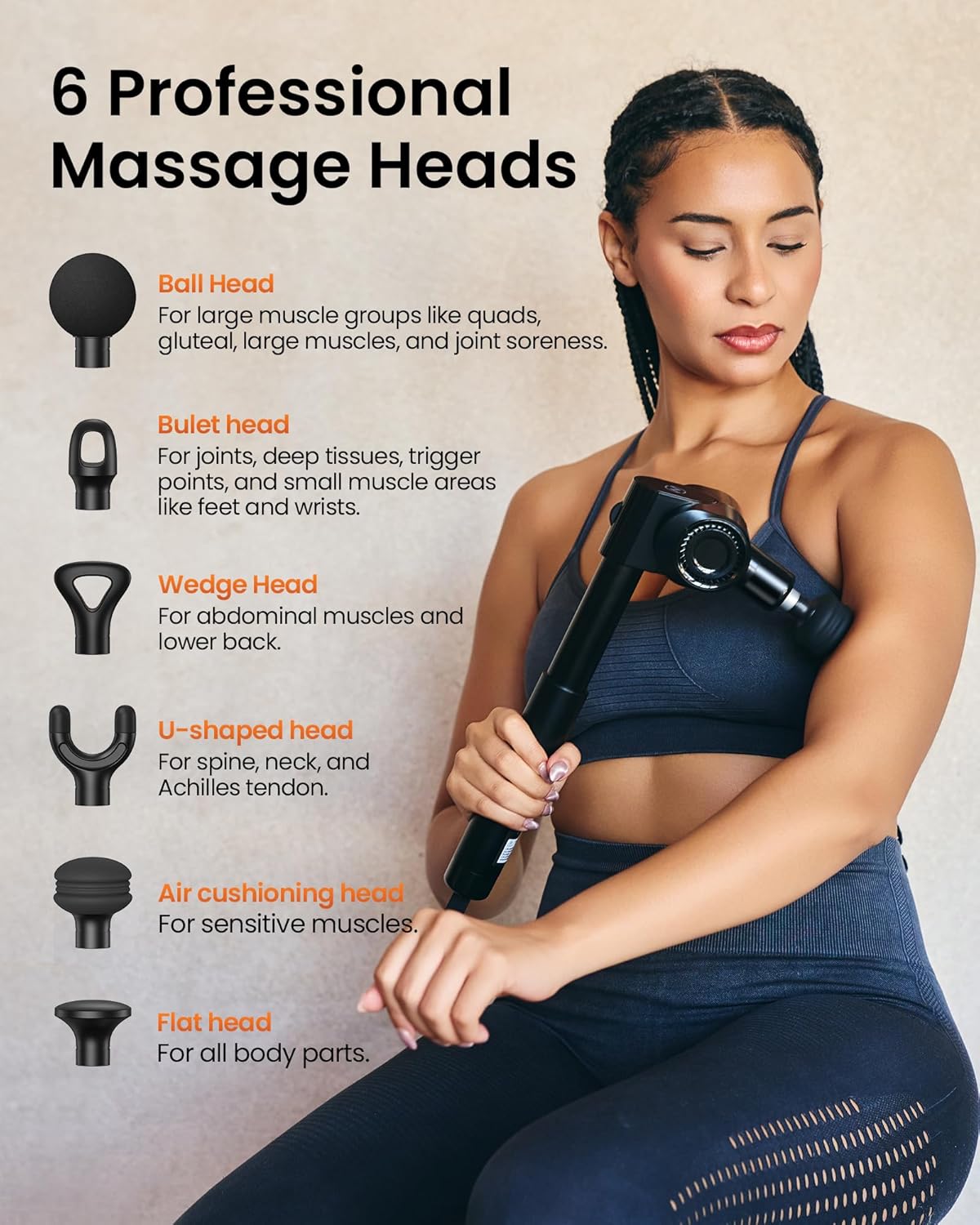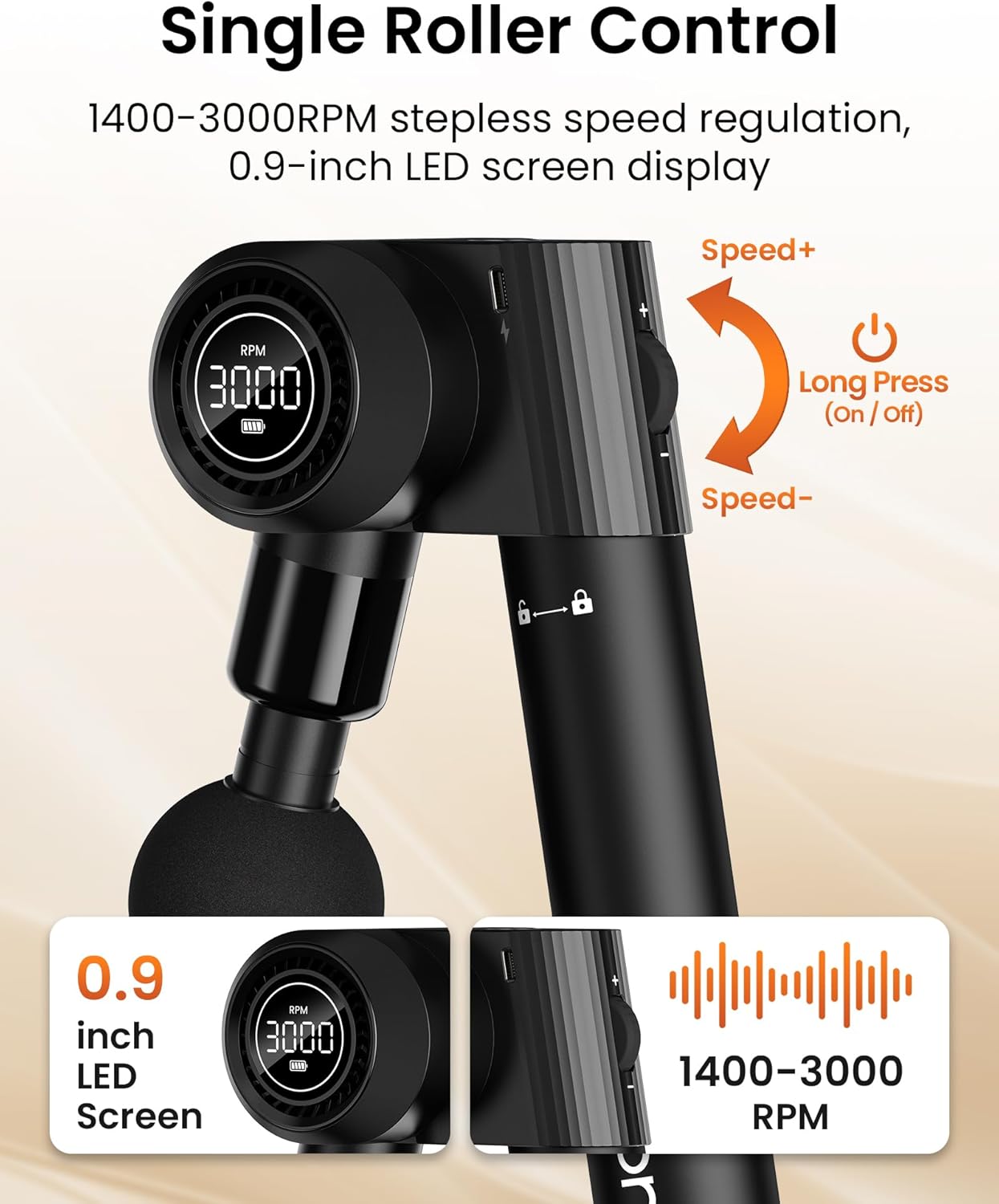 ✨32‑Speed Control & Quiet Operation: Smoothly adjust intensity across 32 speed levels (1400‑3000 RPM) using the intuitive scroll wheel to match different muscles’ needs. Powered by a high‑quality brushless motor, it operates quietly below 55 dB—ideal for use at home, in the gym, or at the office without causing disturbance.