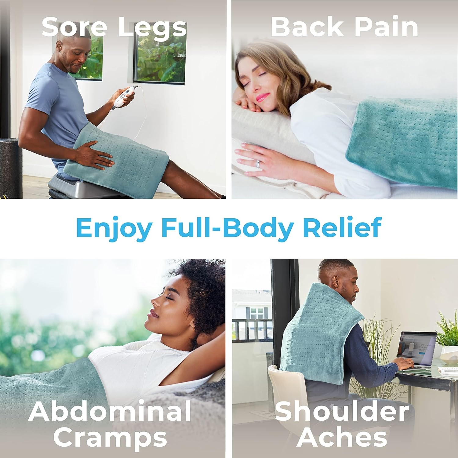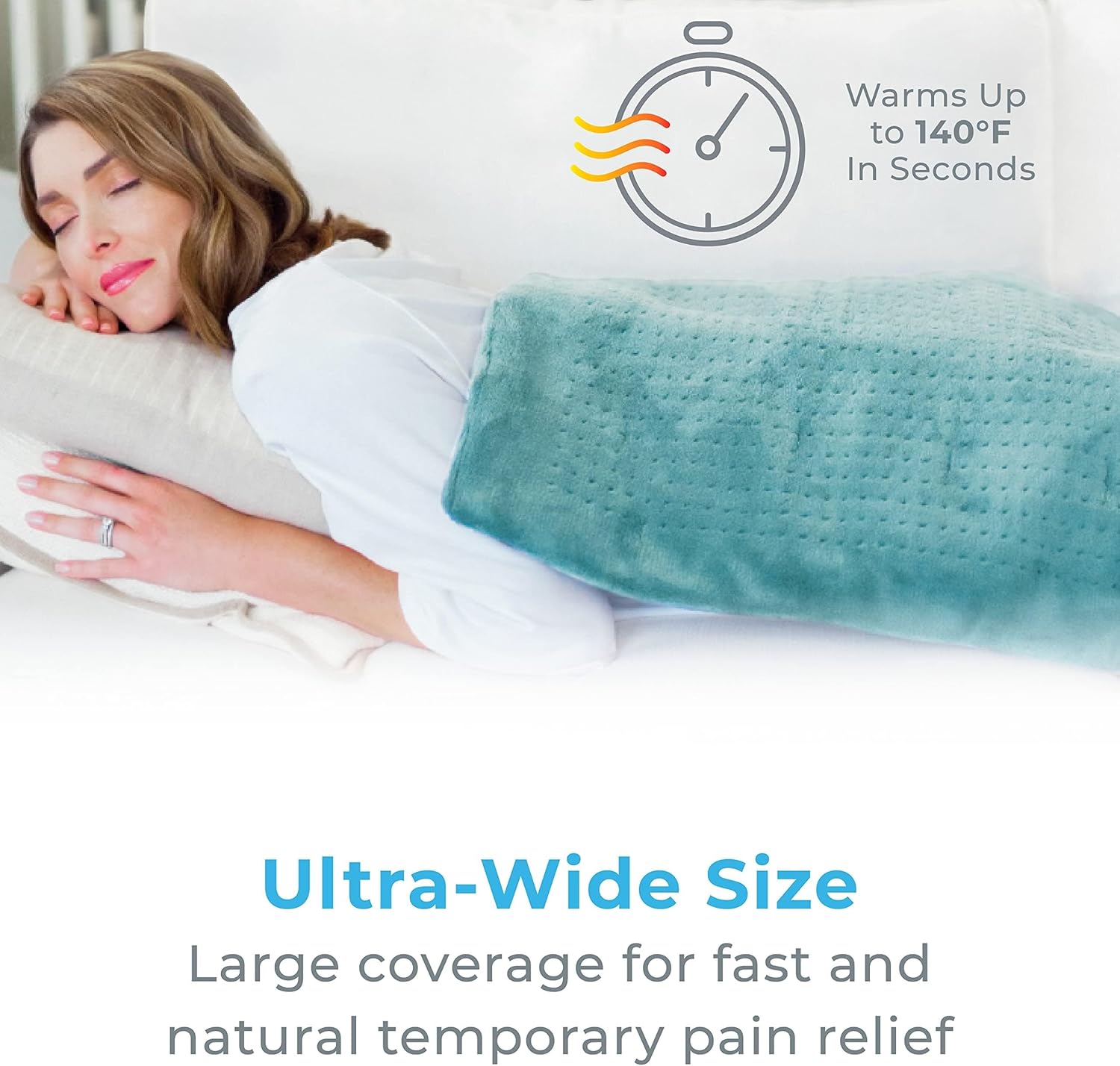 Ultra-Wide Heating Pad: 20” x 24” size provides maximum coverage for your back, shoulders, legs, abdomen, and more muscles to relieve aches, stiffness, and joint pain. It’s a natural, drug-free way to temporarily relieve ongoing pain.