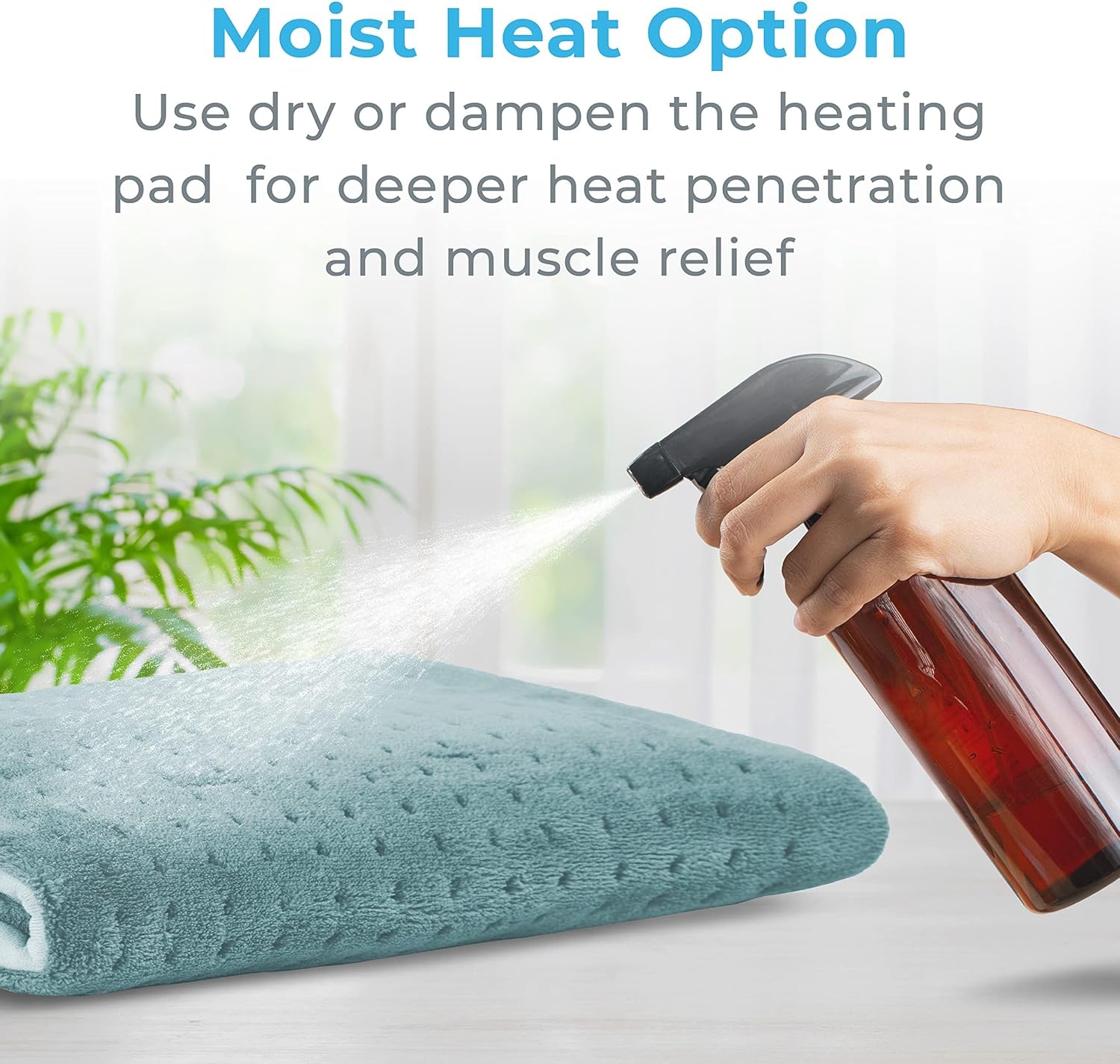 Dry or Moist Heat Therapy: This ultra-wide heating pad can be used for dry heat therapy or moist heat therapy. For moist heat, simply dampen the pad with a spray bottle for deeper heat penetration as you relax.